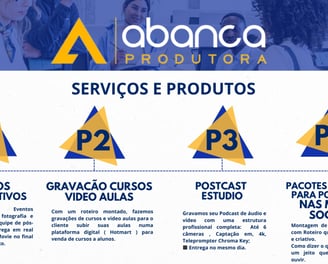 Produzimos vídeos institucionais, filmes, comerciais, podcast, documentários, estúdio fotográfico, transmissões ao vivo, convenções, conferências, workshops, lançamentos de produtos, produzimos seu projeto do início ao fim, elaborando roteiro, filmagem, edição e eventos híbridos e muito mais!